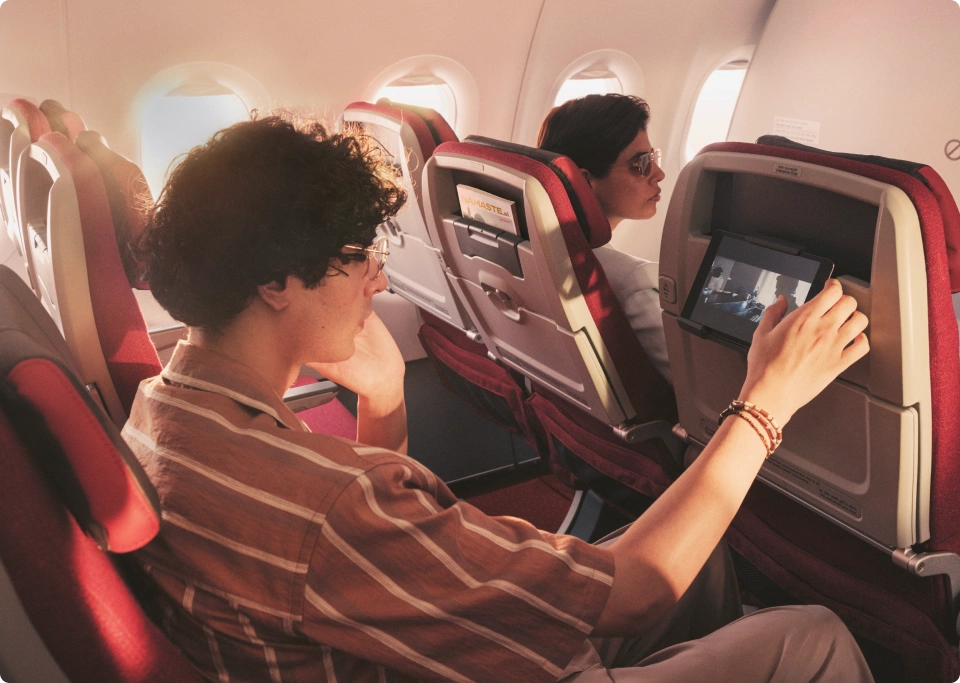 Enjoy 2000+ hours of entertainment at your fingertips with VISTA Stream, your personal inflight streaming service for movies, shows, music, and more.
