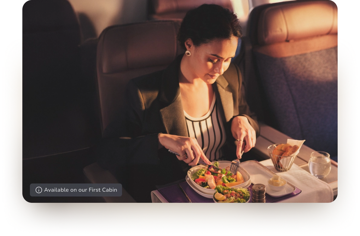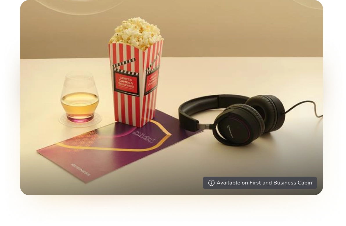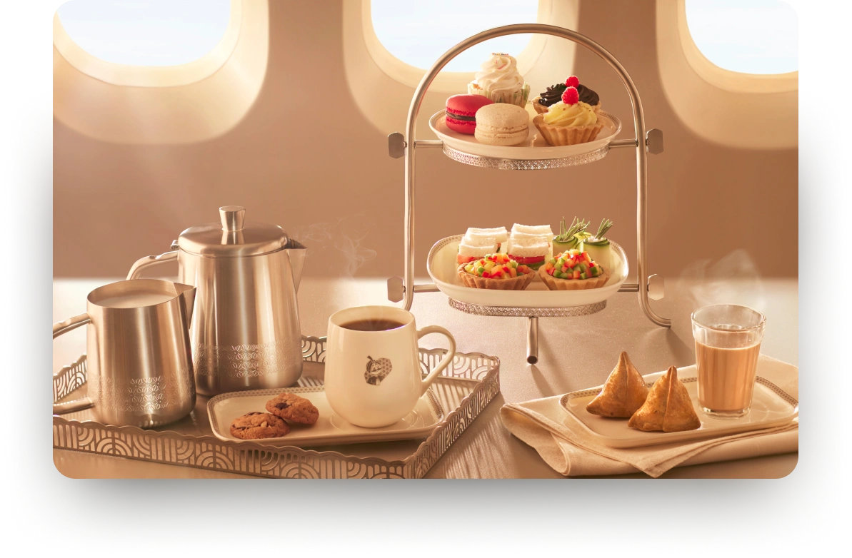 A curated evening snack is now served on First and Business cabins. From savoury bites to sweet indulgences, unwind with comforting flavours perfectly paired with freshly brewed coffee or a soothing cup of tea.