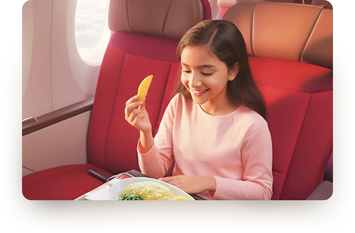 From familiar favourites, to dietary preferences, we offer a range of special and child friendly meals to suit different tastes. You can also pre-order a meal that meets your child’s preferences or dietary requirements up to 24 hours before your flight.