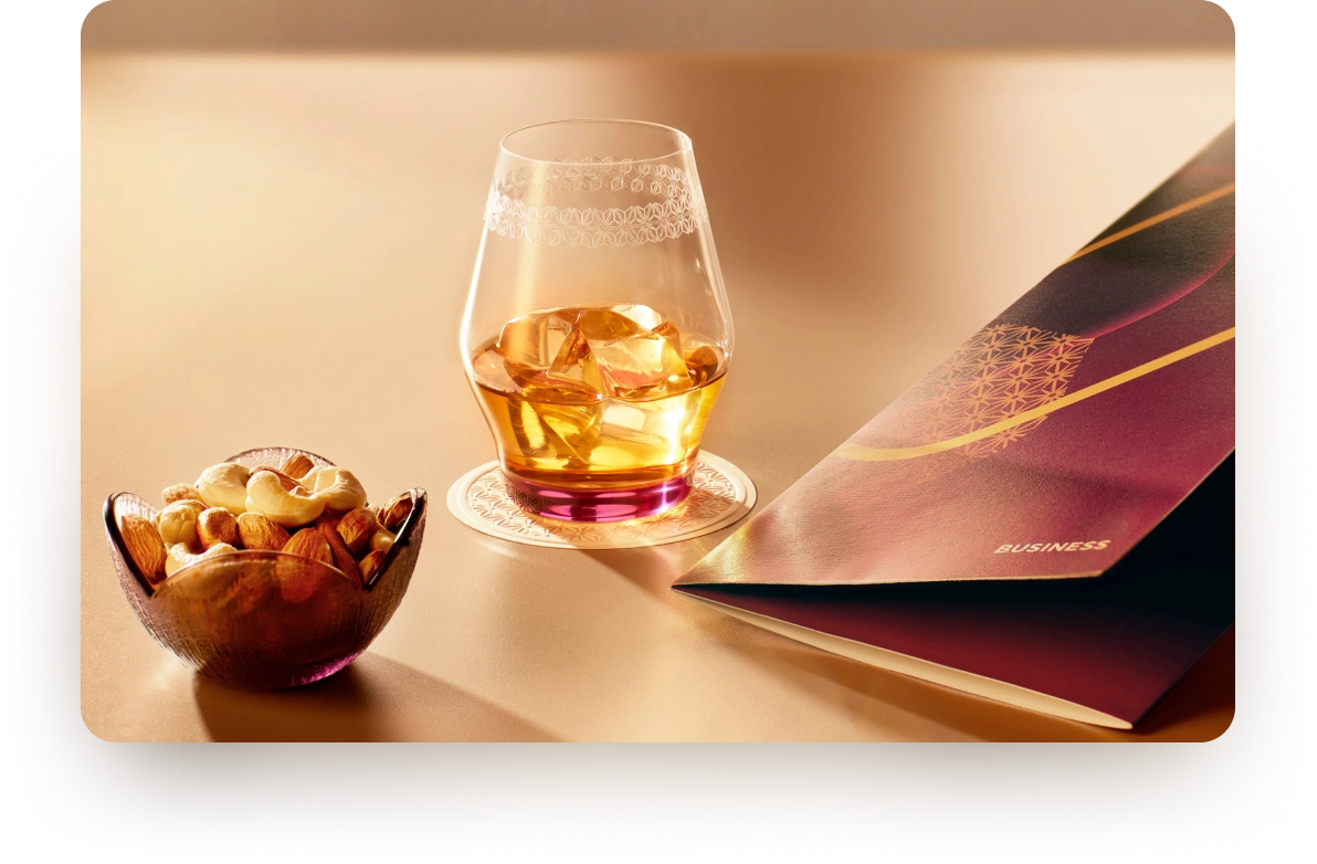 Indulge in a handpicked selection of beverages, featuring iconic Indian favourites and celebrated global classics. Every sip is a journey thoughtfully crafted to elevate your in-flight experience on international flights.