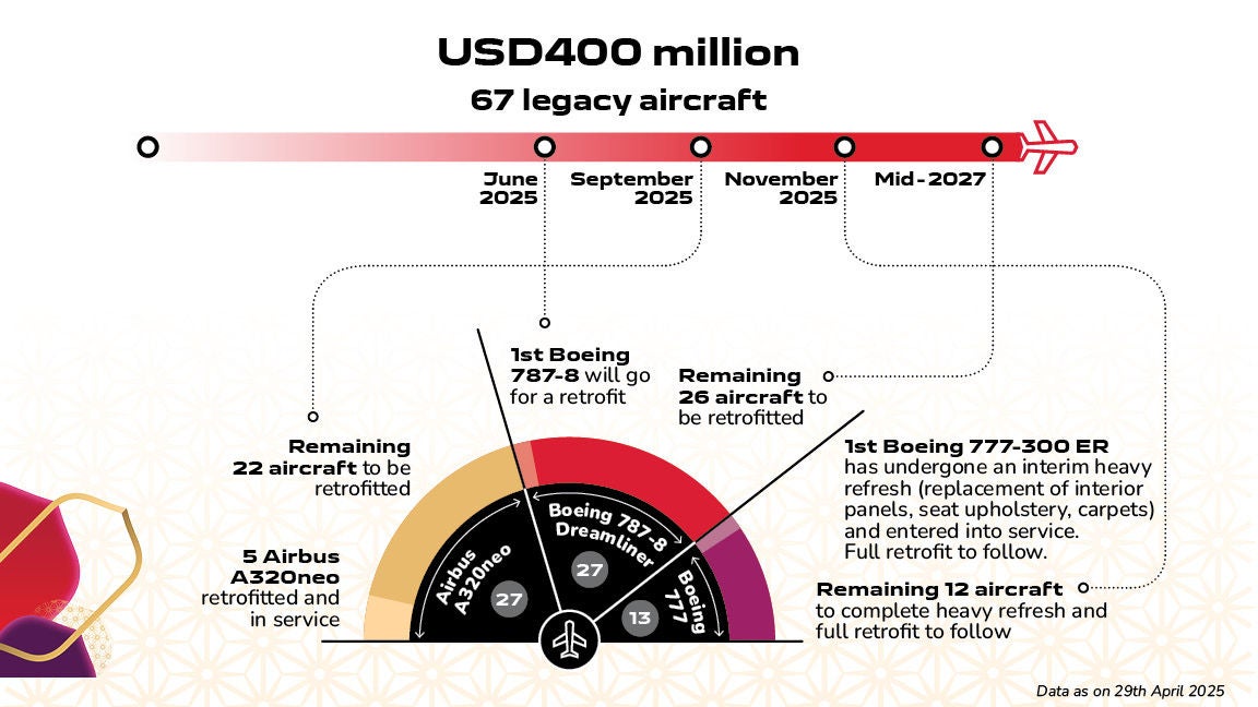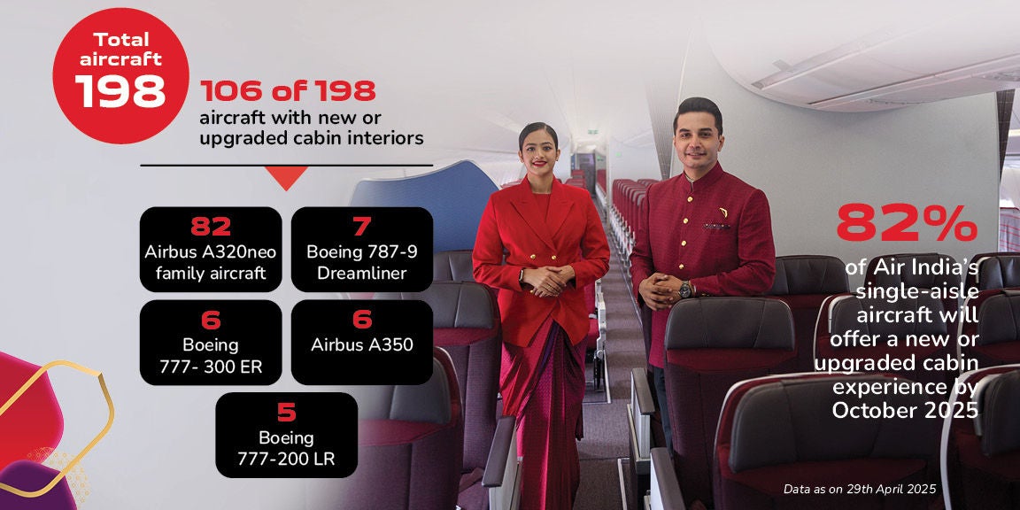 The retrofit programme is an important step forward in Air India’s transformation journey. As we advance, it will help provide a consistent experience across the fleet with a three-class cabin configuration with luxurious Business Class seats, India’s only Premium Economy, and an enhanced Economy cabin. At present, more than 50% (106 of 198) of the Air India aircraft offer new or upgraded cabin interiors. And progressively more aircraft will be upgraded.