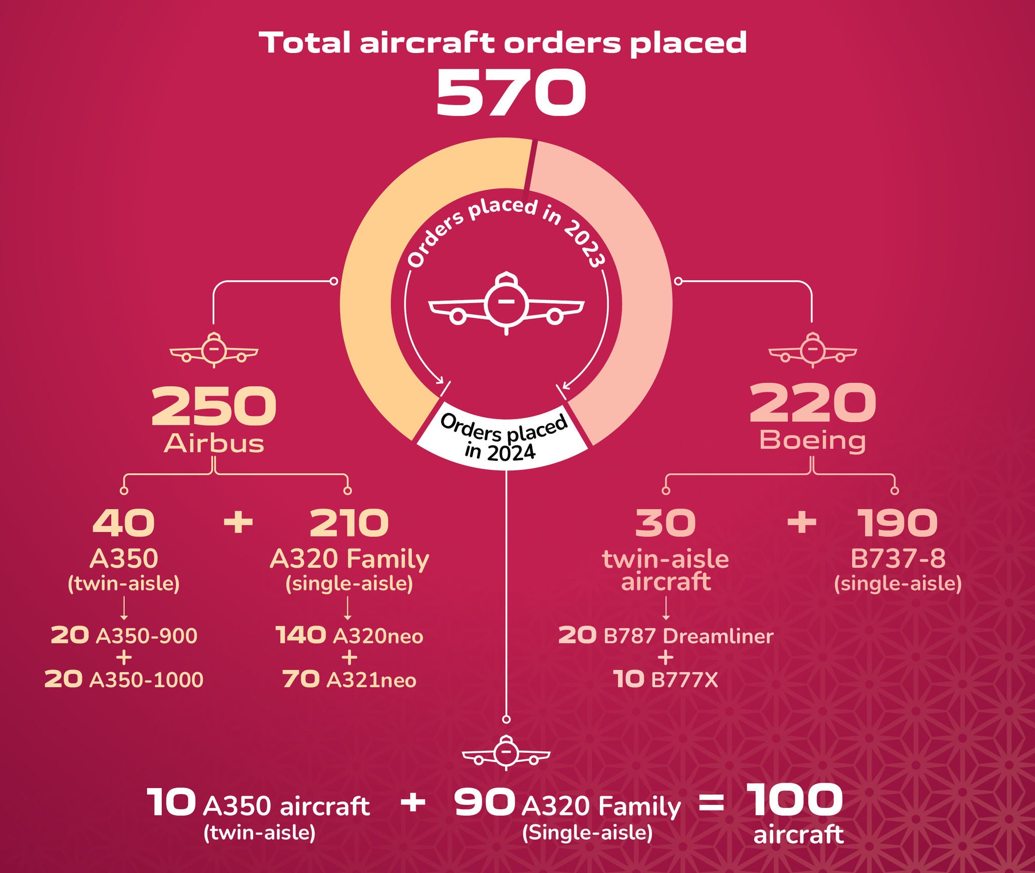 In June 2023, Air India had placed landmark orders to purchase 470 aircraft from Airbus and Boeing as part of its ongoing Vihaan.AI transformation programme that prioritises modernising its fleet among other monumental changes. Reaffirming its commitment to building a modern airline that India can be proud of, it has placed an additional order to purchase 100 more Airbus aircraft, taking the total number of aircraft ordered to 570.