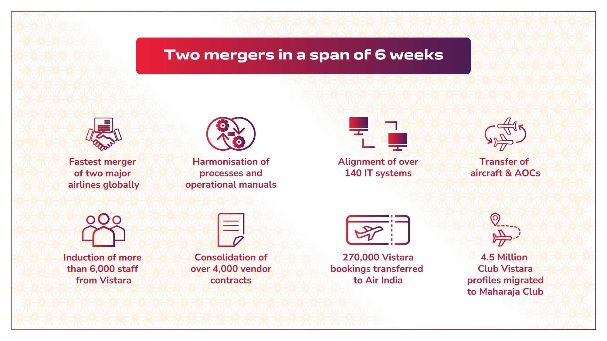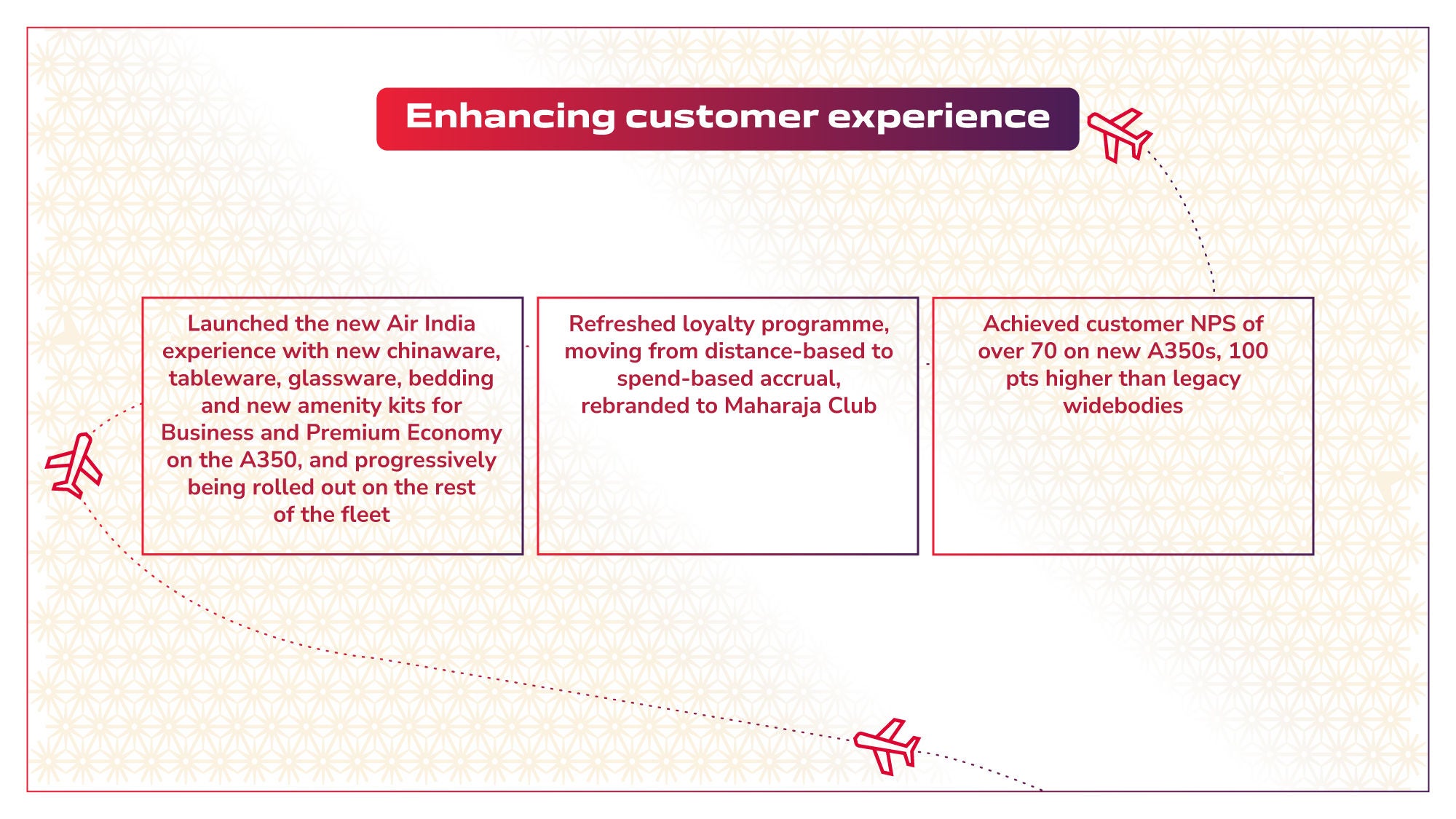 As we draw closer to the end of the year, a year of further change and progress, we look back at some of the key highlights and take stock of what needs to be done as we move forward. 2024 saw the realisation of some of the most significant milestones in our transformation journey. The biggest one being the completion of our two major mergers, of Air India Express with Air Asia India and of Air India with Vistara, which were done in record time. Combined, 30,000 Air Indians now operate 300 aircraft across both brands, flying over 60 million customers annually to more than 100 destinations in India and around the world.