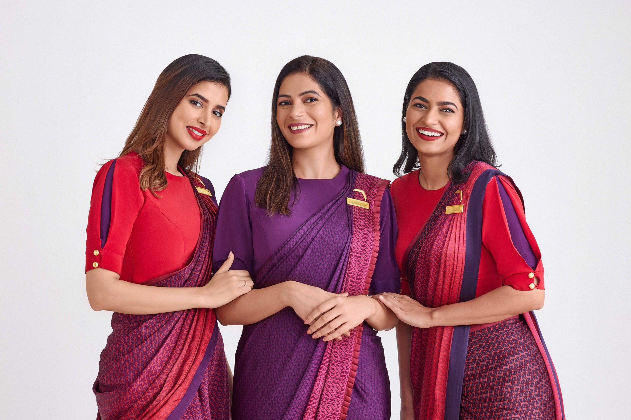 Malhotra has also designed the shoes – the female cabin crew wear dual-tone (black and burgundy) block heels and the male cabin crew wear comfortable black brogues. The uniforms also include accessories like pearl earrings and sling bags for the female cabin crew.