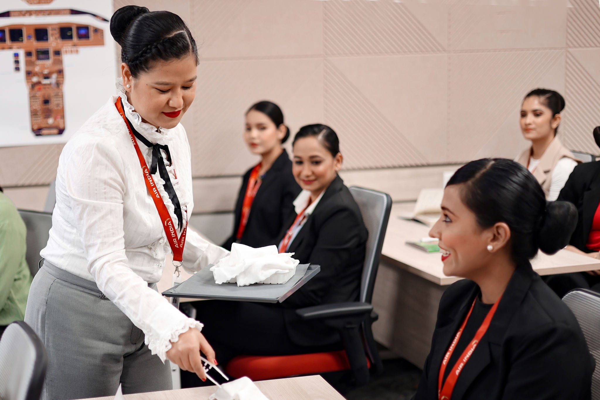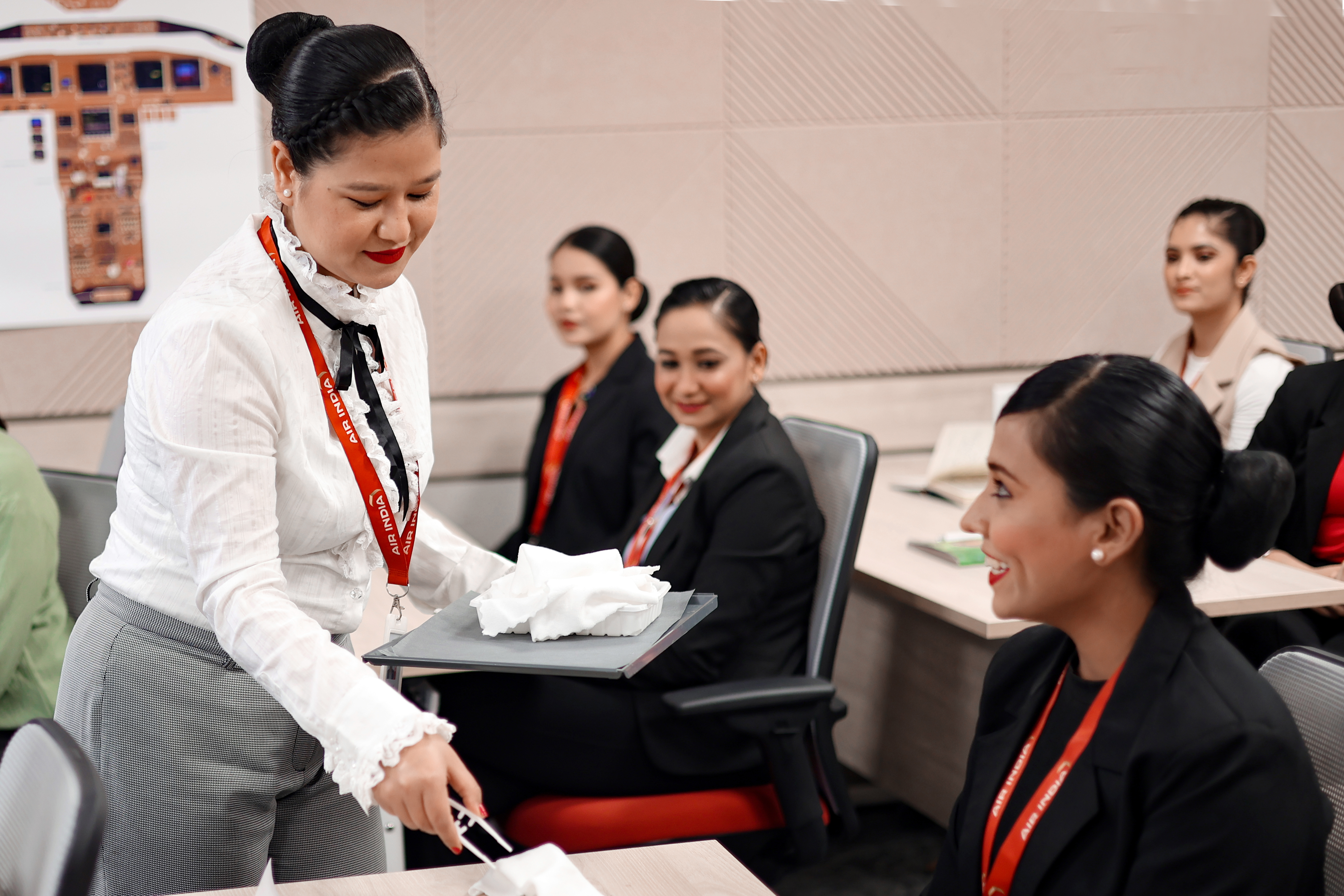The academy is envisioned to provide Air India professionals with immersive learning experiences with a focus on practical application. Door Training for instance prepares our crew for routine and emergency operational procedures. Advanced simulators and drill facilities ensure real-world exposure to emergency protocols equipping crew to respond seamlessly in such situations. A cabin crew trainee expresses, “It was amazing to be at the Air India Training Academy. The classrooms are spacious, providing an environment that is conducive to learning and comfort. The detailed curriculum along with the hands-on training helps us prepare well for all kinds of day-to-day challenges- big or small.”