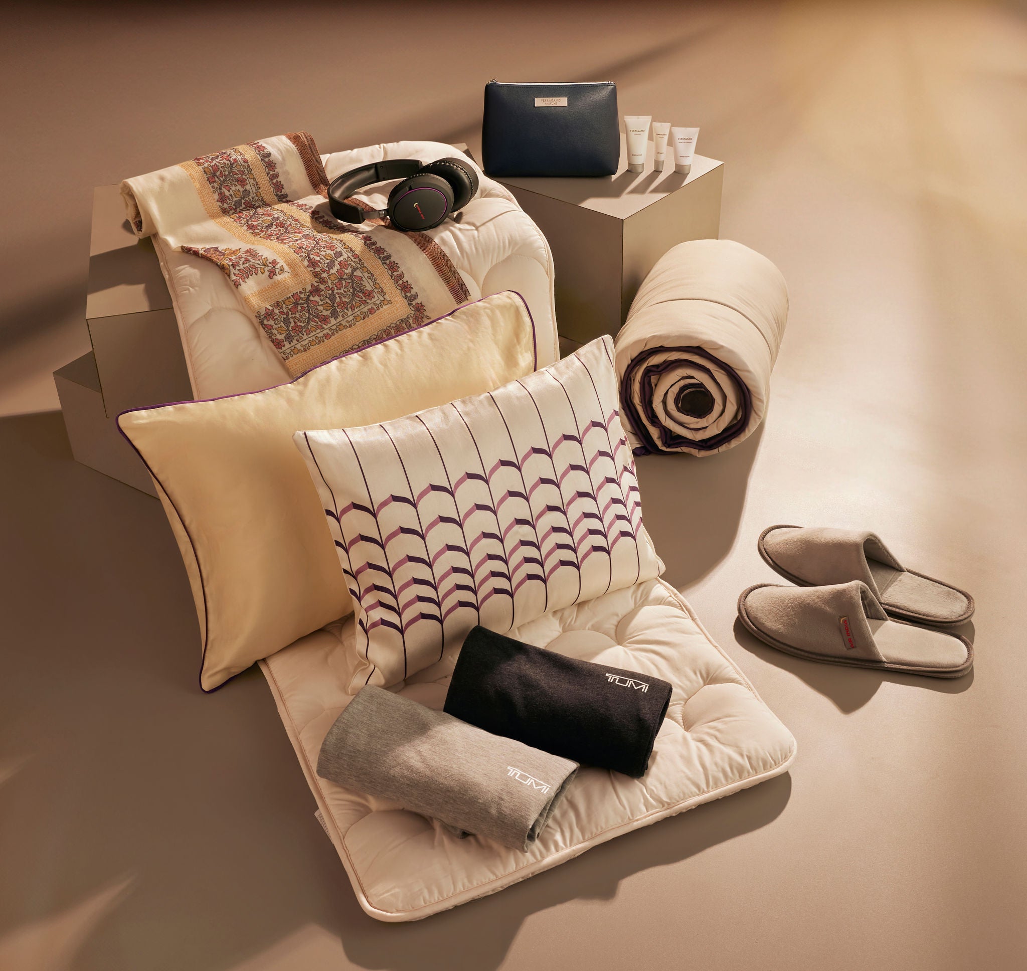 Comfortable, sustainable sleepwear by TUMI: First and Business class guests will continue to enjoy Air India’s award-winning and refreshed loungewear by TUMI. Keeping style and sustainability as key considerations, Air India’s TUMI loungewear is made from recycled materials blended with cotton for extra softness and breathability. First and Business class guests will also enjoy plush velour slippers for maximal comfort in the sky.