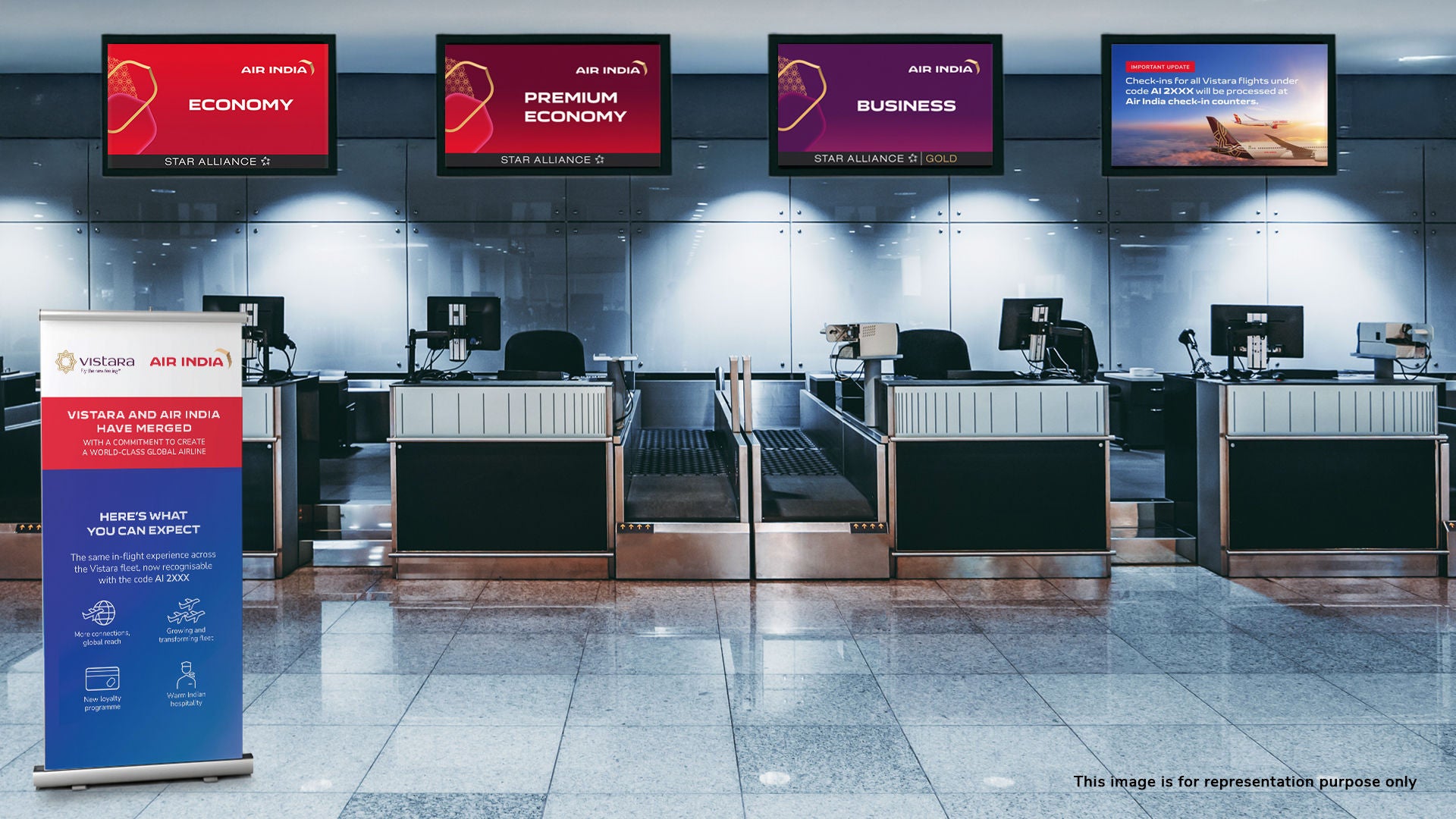 2) Assistance at various touch points at domestic airports: At metro city airports, before the terminal entry, helpdesk kiosks will be deployed at the curb side. Customer support staff wearing Air India x Vistara branded t-shirts will be around and happy to help if customers have any queries. Air India is also closely working with airport security personnel to guide customers with old Vistara tickets to the nearest help desk or to Air India customer support staff. Flight Information Display Screens (FIDS) and standees will be placed at the airport to aid customers to locate the Air India check-in counters. Progressively, Vistara airport ticketing offices and Vistara check-in terminals will become Air India.