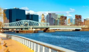 Newark Liberty International Airport is located about 24 km southwest of Midtown Manhattan and 97 km northeast of Philadelphia, serving both metropolitan areas. Newark Airport was the first major airport in the United States.